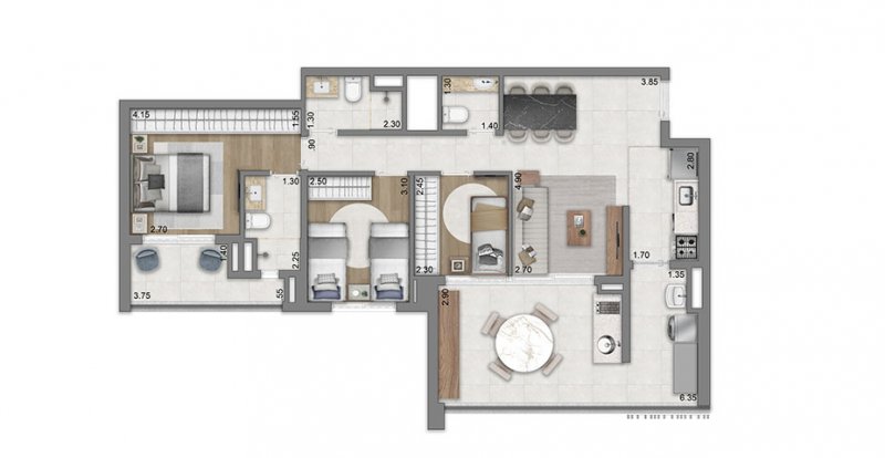 - Área Privativa: 77 m²
