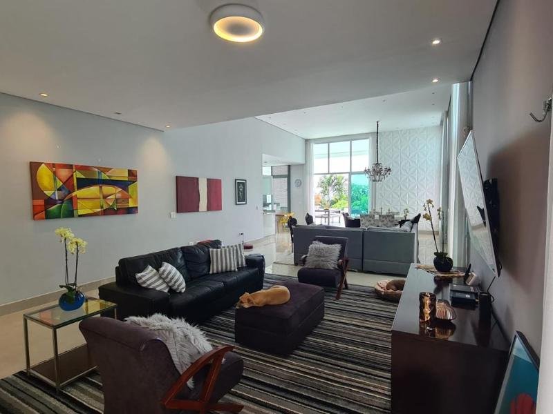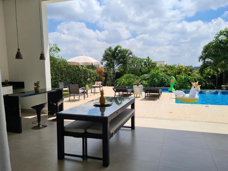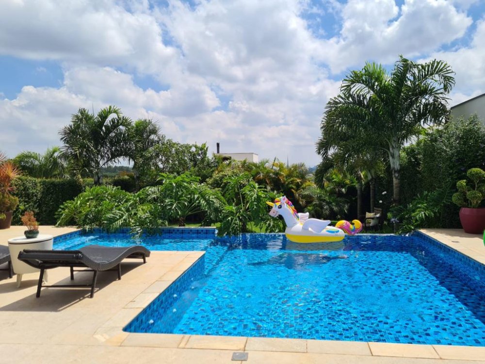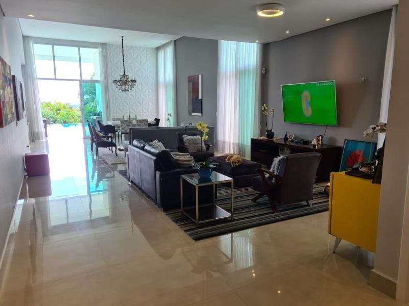Casa de Condomínio Clube fechado, com 3 suites,8 vagas, casa com piscina privativa. Condomínio com infra estrutura, com lazer cinema, quadra poliesportiva, piscina com bar ,Quadra de Tênis profissional, salão de festas, acesso ao condomínio por biometria, condomínio muito arborizado. Tem vários eventos no condomínio, mercado, evento de campeonato. Condomínio bem interativo. Agende sua visita