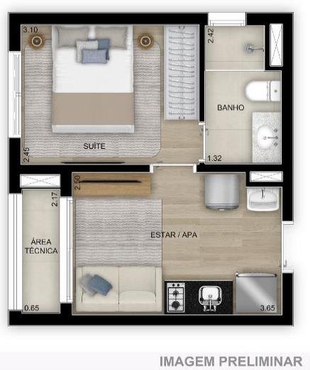 LANÇAMENTO STUDIO COM 1 OU 2 DORM com apto de 26 a 40 m2