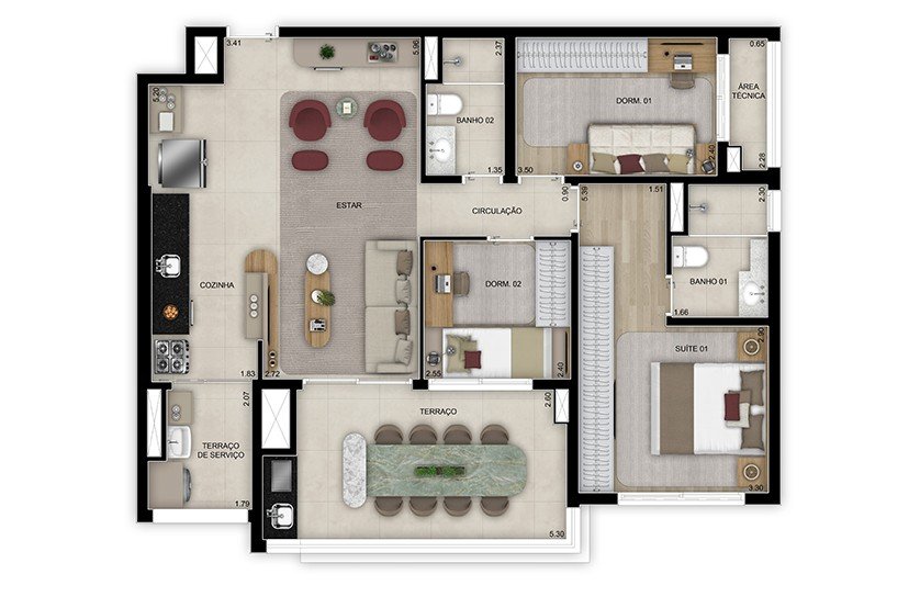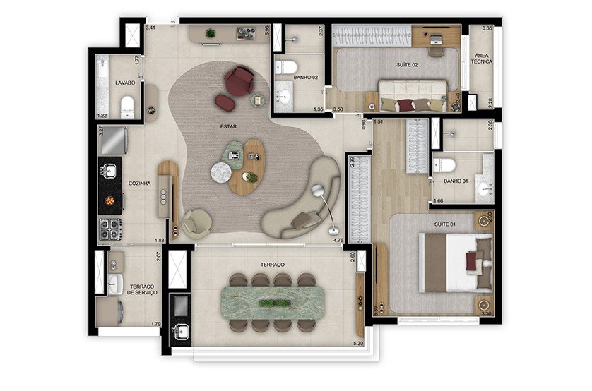 - Área Privativa: 120 m²