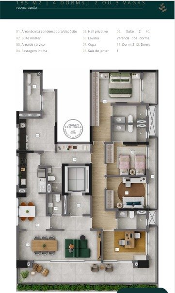 - Área Privativa: 185 m²
