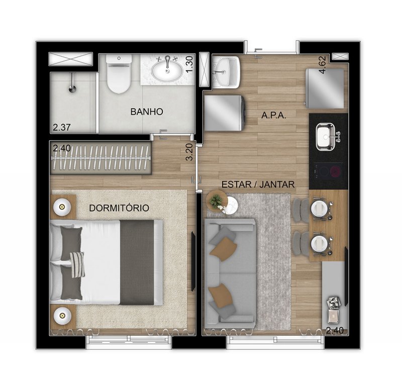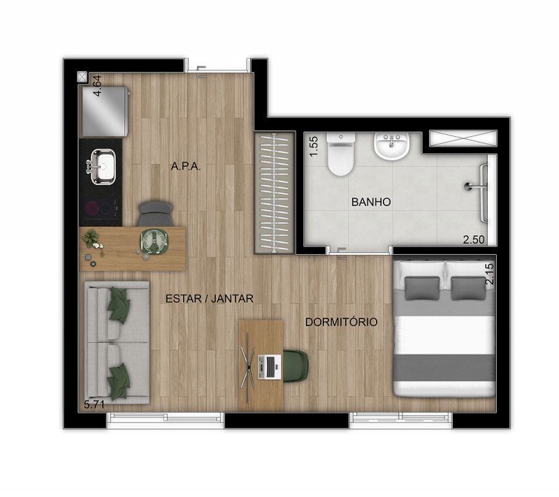 - Área Privativa: 26,50 m²