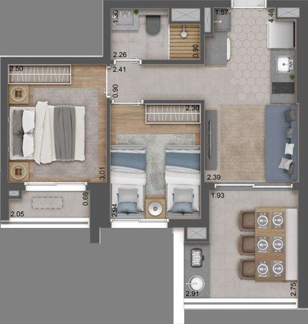 - Área Privativa: 48 m²